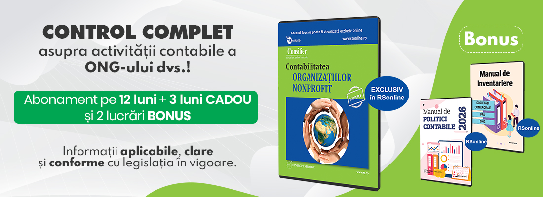 12 luni de abonament + 3 luni CADOU la Consilier Contabilitatea Organizatiilor Non-Profit, cu consultanta personalizata inclusa!